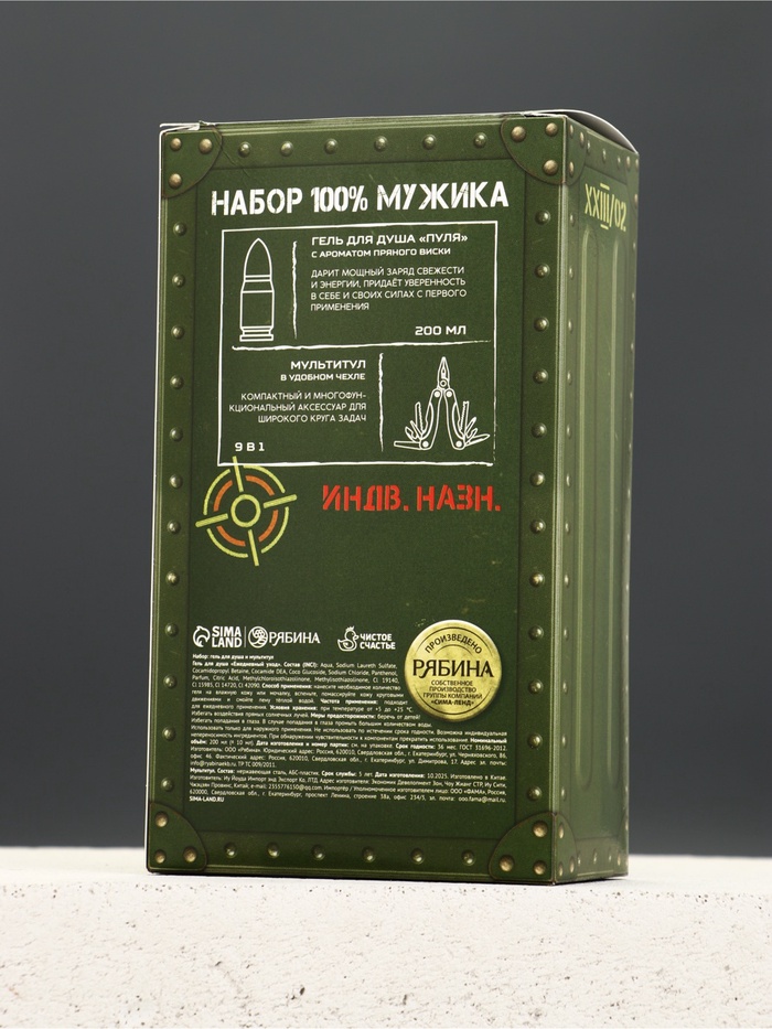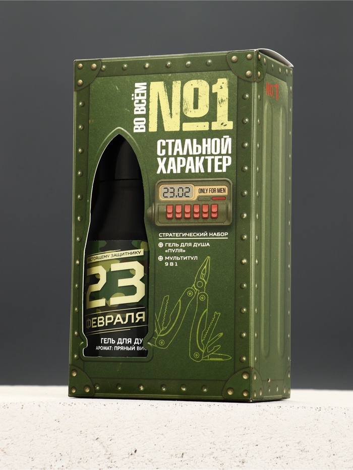 Технические характеристики Подарочный набор «Стальной характер», гель для душа 200 мл во флаконе пуля и мультитул, Чистое счастье