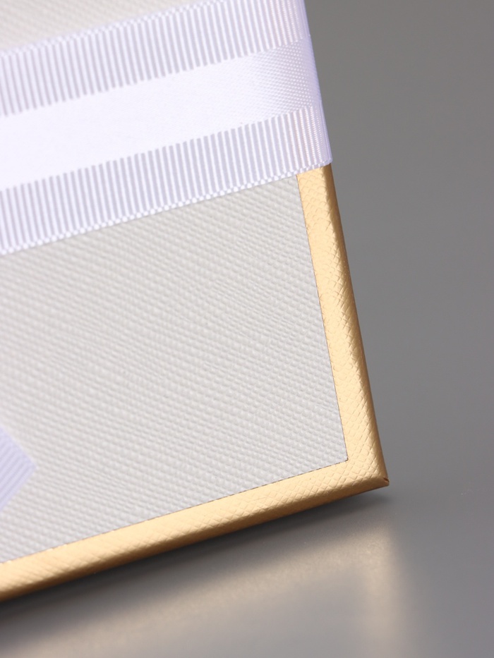 - Универсальный дизайн и высокая плотность: Молочный однотонный цвет с тиснением в виде линий и бантов выглядит нарядно и нейтрально. Плотный картон (1200 г/м²) держит форму, коробки не деформируются под весом содержимого и выглядят солидно.