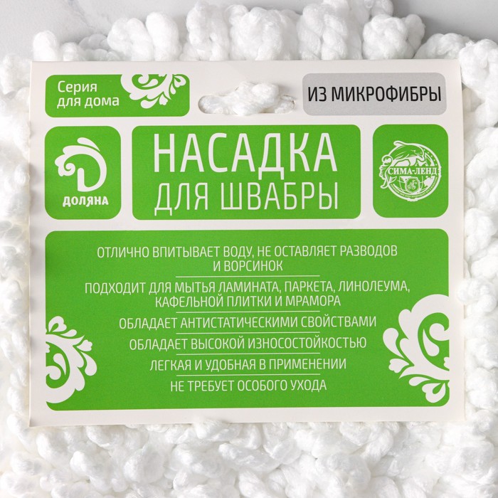 Насадка из микрофибры отлично подходит для мытья всех видов напольных покрытий: линолеума, ламината, паркета, кафельной плитки, мрамора. Она не царапает поверхность и отлично впитывает воду.