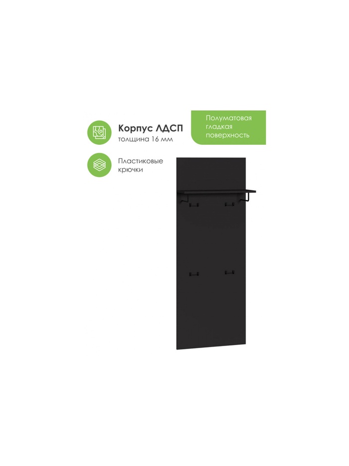 Элегантная настенная вешалка «Сейдиль 15.16» в черном цвете сочетает минимализм и функциональность. Компактная и высокая конструкция позволяет эффективно использовать пространство прихожей или коридора, обеспечивая удобное хранение верхней одежды, головных уборов и аксессуаров.