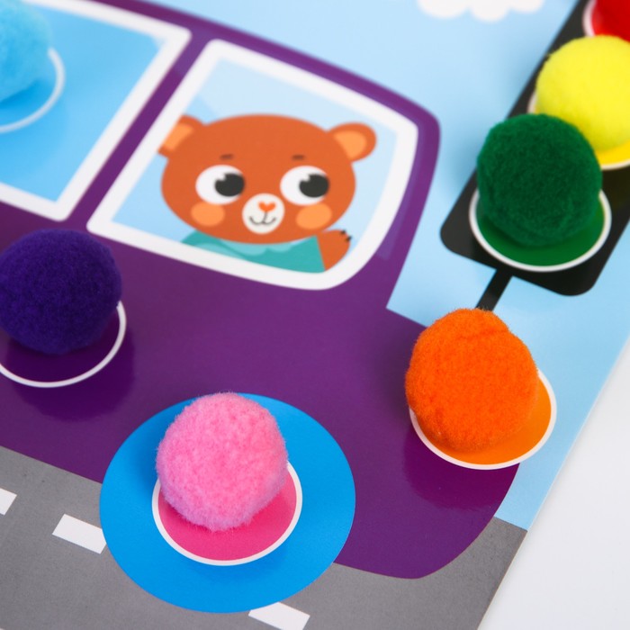 Настольная игра для малышей «Разложи по цветам», с цветными помпошками
