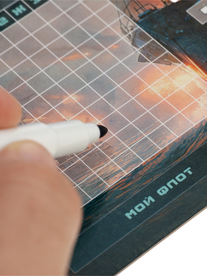 - Интерактивность хода: Игроки по очереди «стреляют», отмечая выстрелы маркерами и стирая их для следующей партии; стратегия строится на выверенном размещении флота и точности попаданий соперника.