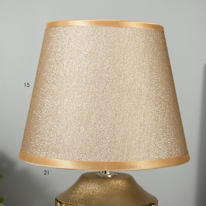 - Керамическое основание: Прочное и устойчивое основание из керамики в золотом цвете обеспечивает надежную опору. Материал долговечен и приятен на ощупь, что подчеркивает качество исполнения светильника.