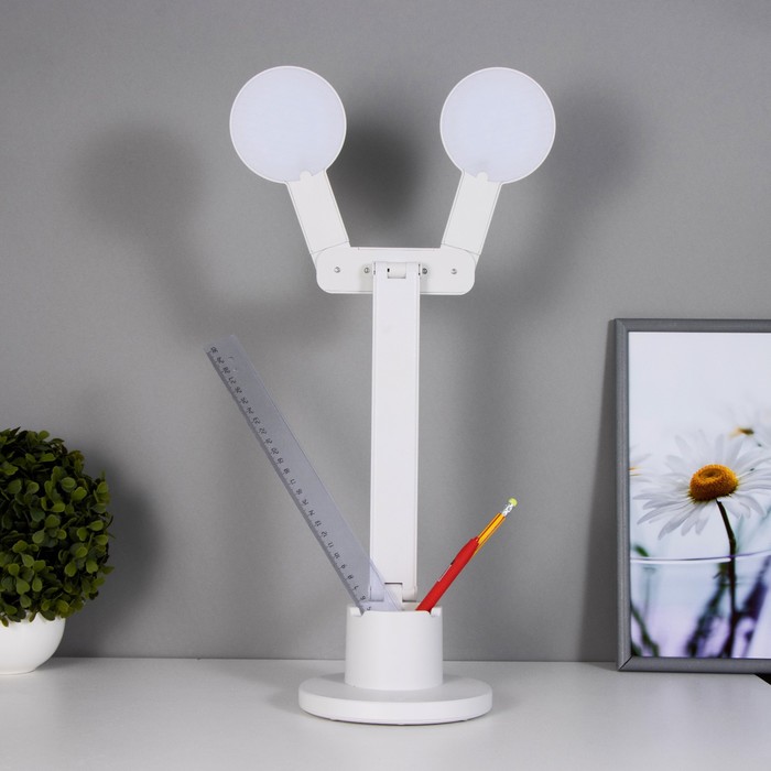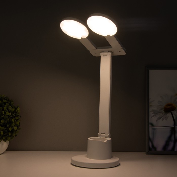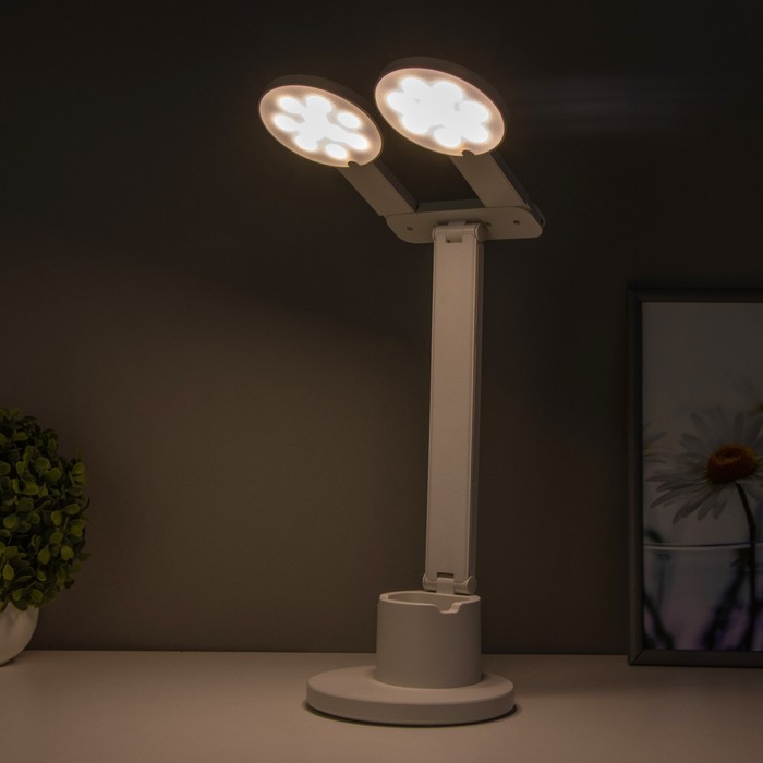 Настольная лампа RISALUX «Круги», сенсорная, с органайзером, LED, 20 Вт, АКБ, USB, белая, 44×36×15 см