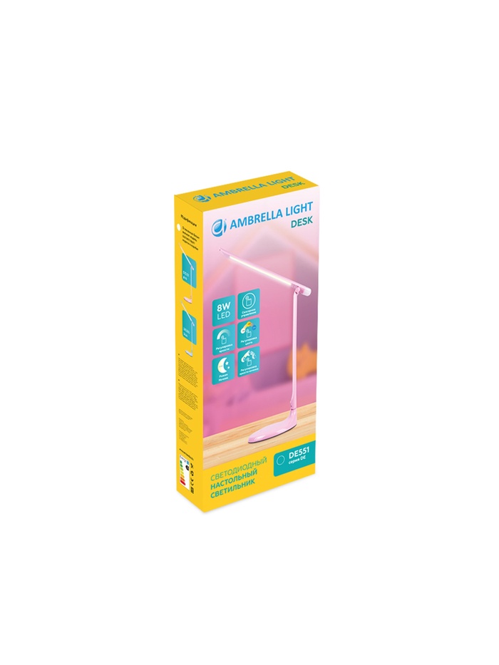 Технические характеристики Настольная лампа DE551, LED, 8Вт, 3000-6400K, 15х15х60 см, розовый