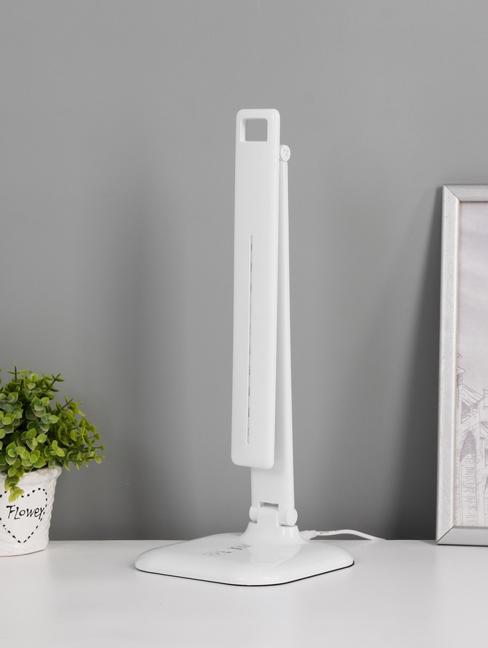 Настольная лампа со встроенными светодиодами предназначена для создания комфортного и равномерного освещения рабочей зоны. Компактная конструкция на подставке обеспечивает устойчивое размещение на столе и не занимает лишнего пространства.