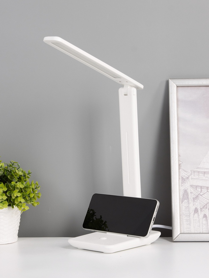 Настольная светодиодная лампа в белом цвете ориентирована на создание аккуратного и направленного освещения рабочей зоны. Её вытянутая форма и компактные габариты позволяют удобно разместить светильник на столе, не перегружая пространство и сохраняя функциональность.