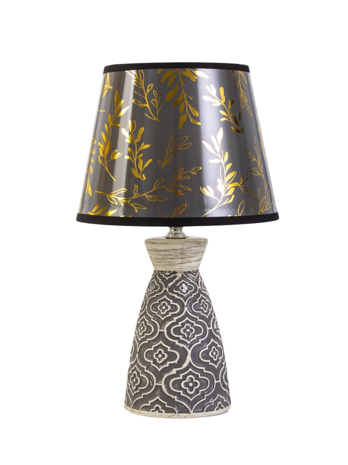 Свет в тонах спокойствия и порядка Настольная лампа с бежевым керамическим основанием и тёмно-серым конусным абажуром, E14, 40 Вт — лаконичное решение для тех, кто ценит сдержанную эстетику и устойчивость форм. Её дизайн строится на контрасте светлого основания и глубокого цвета рассеивателя, что создаёт ощущение баланса.