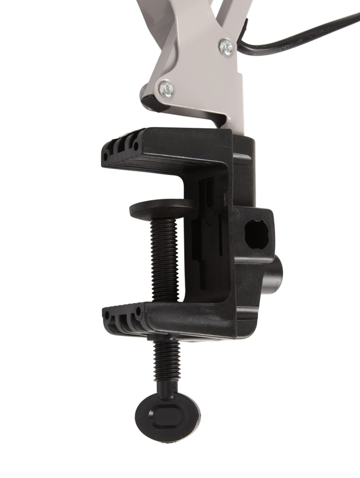 Настольная лампа с креплением на струбцине разработана для организации эффективного рабочего освещения без загромождения стола. Надёжная фиксация на краю поверхности позволяет освободить пространство и создать аккуратную рабочую зону.