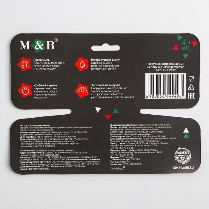 Нагрудник Little gentelman, непромокаемый, на липучке, ПВХ, новогодняя подарочная упаковка