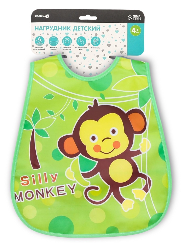 Нагрудник непромокаемый, с карманом, на липучке «Обезьянка»