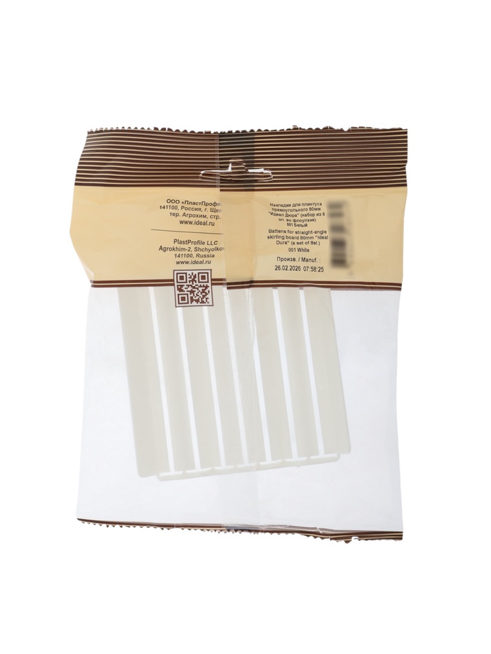 Накладки для плинтуса прямоугольного 80мм "Идеал Дюра" (набор из 8 эл. во флоупаке), 001 Белый 11001