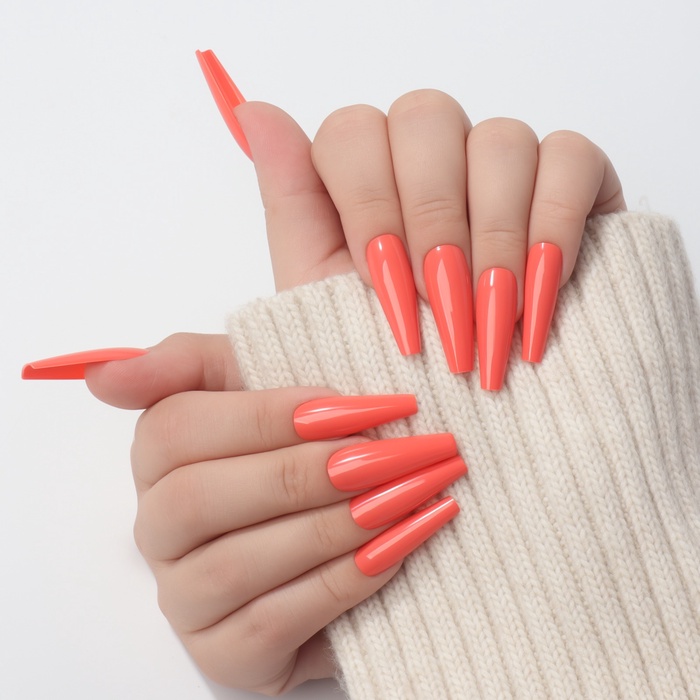 Накладные ногти, 24 шт., форма балерина, цвет оранжевый