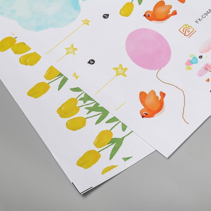 Технические характеристики Наклейка интерьерная цветная «Девочка на лестнице и тучки», набор 2 листа, 30×90 см
