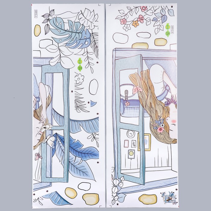 Наклейка пластик интерьерная цветная "Девочка выглядывает из окошка" 30х90 см набор 2 листа 706728