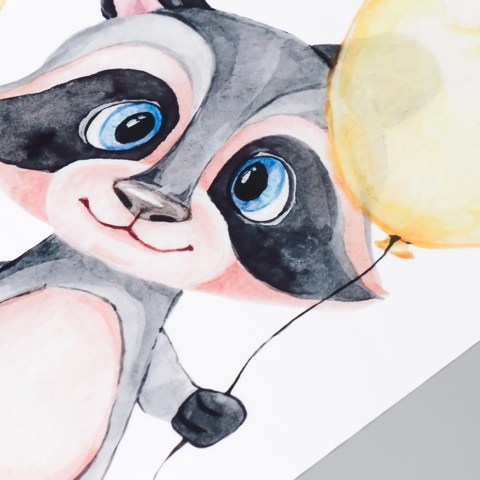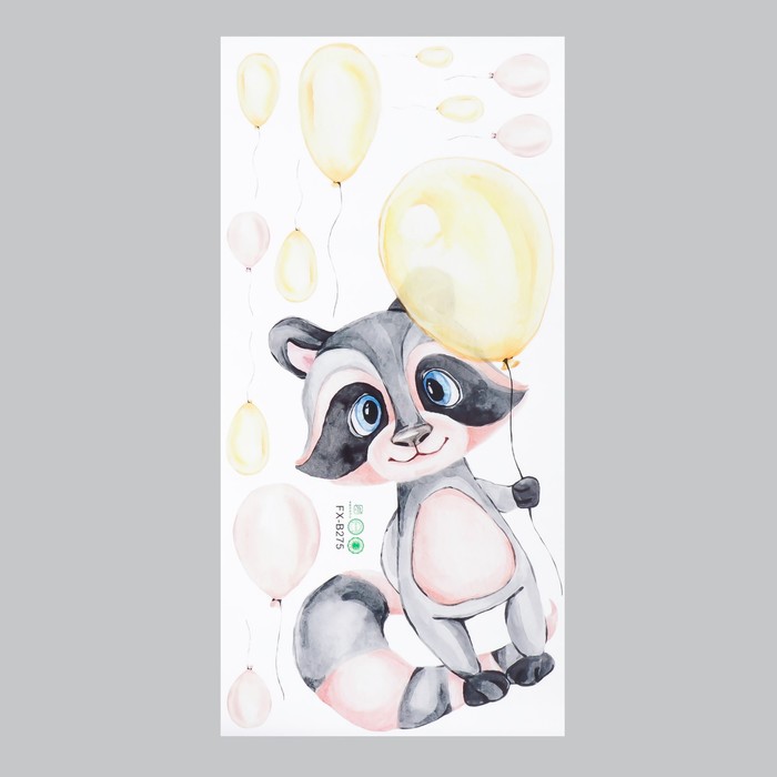 Наклейка интерьерная цветная «Енотик с воздушными шарами», 30×60 см
