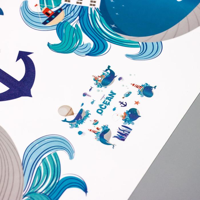 Технические характеристики Наклейка интерьерная цветная «Киты в океане», 60×90 см