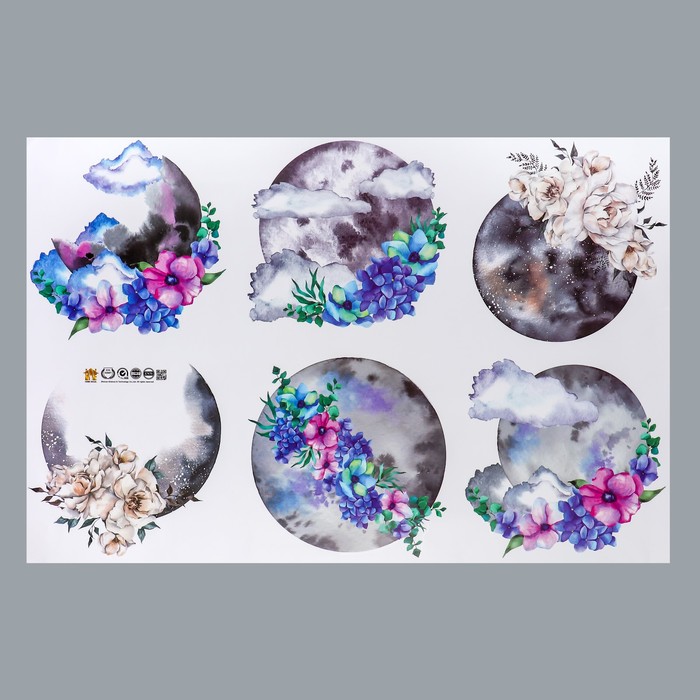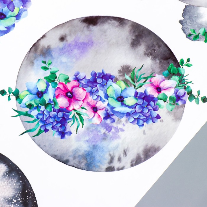 Наклейка пластик интерьерная цветная "Луна и цветы" 60х90 см