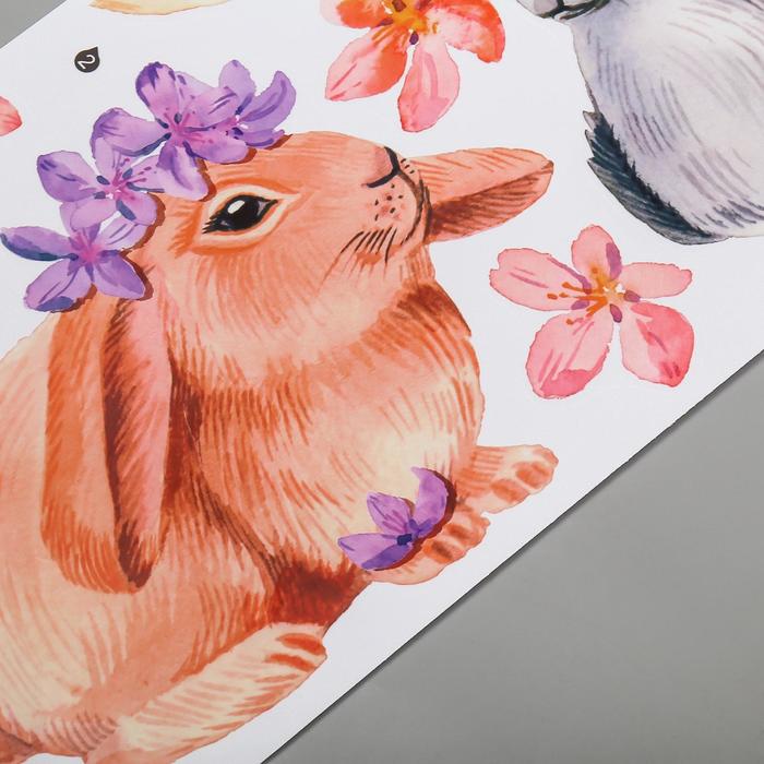 Наклейка пластик интерьерная цветная "Милые кролики с цветочками" 30х90 см