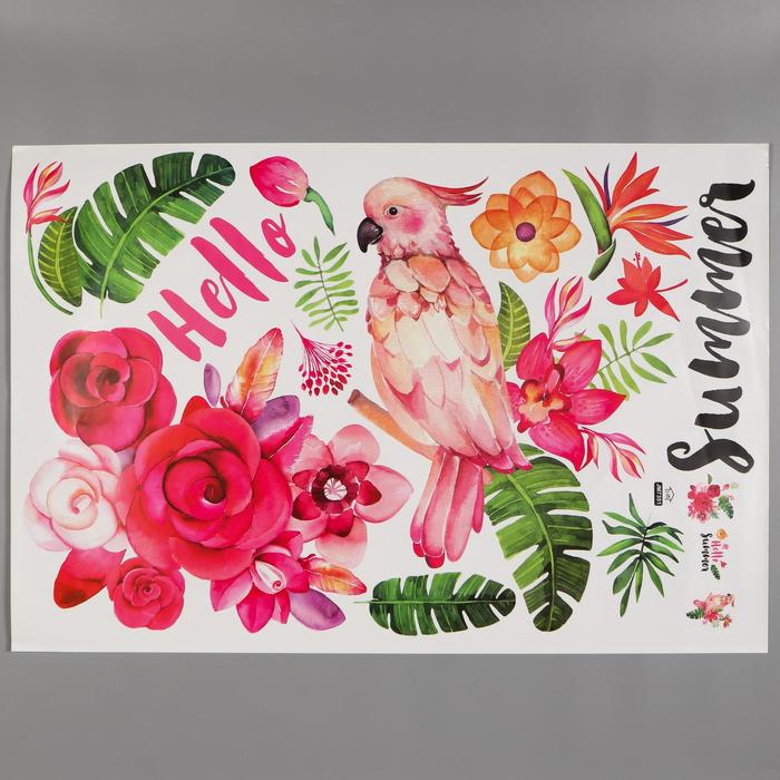 Технические характеристики Наклейка интерьерная цветная «Розовый какаду и цветы», 60×90 см