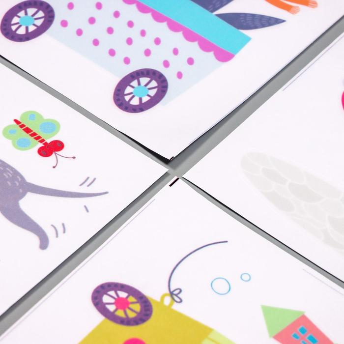 Технические характеристики Наклейка интерьерная цветная «Зверята и транспорт», 25×35 см, набор 4 листа