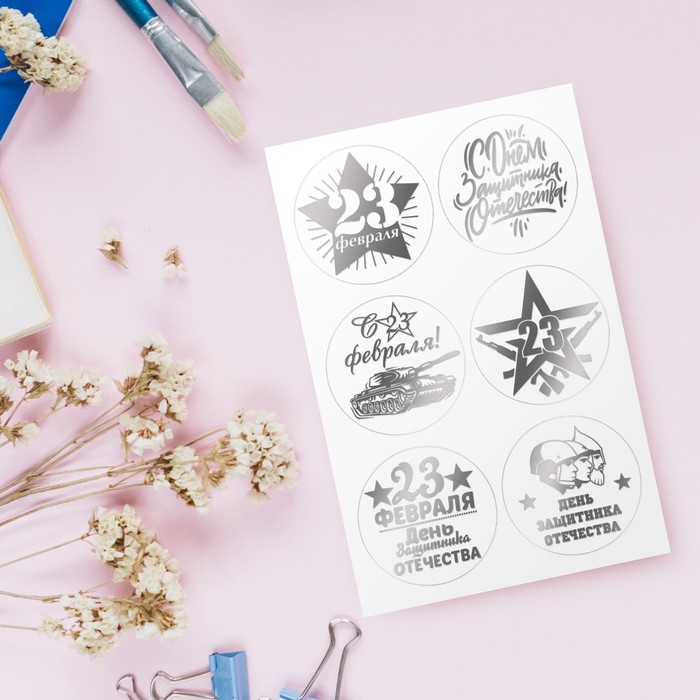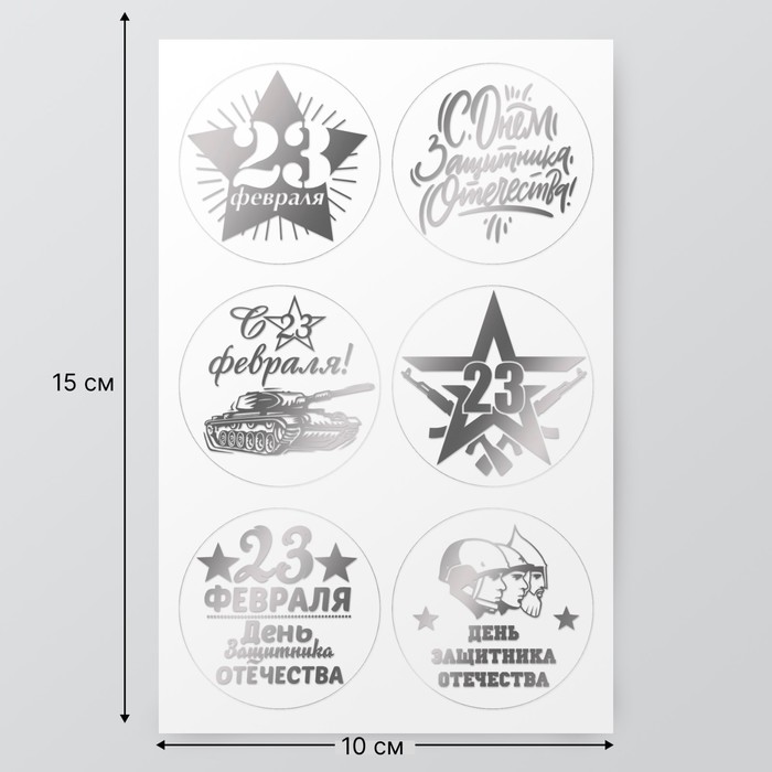 Наклейки (стикеры) "23 февраля" 10х15 см, цвет серебро, 5-319