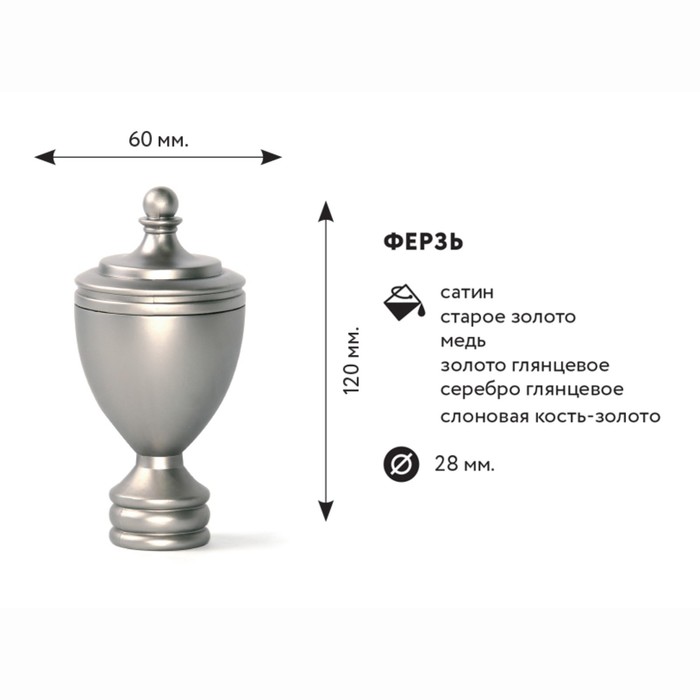 Технические характеристики Наконечник «Ферзь», 2 шт, d=2,8 см, цвет сатин