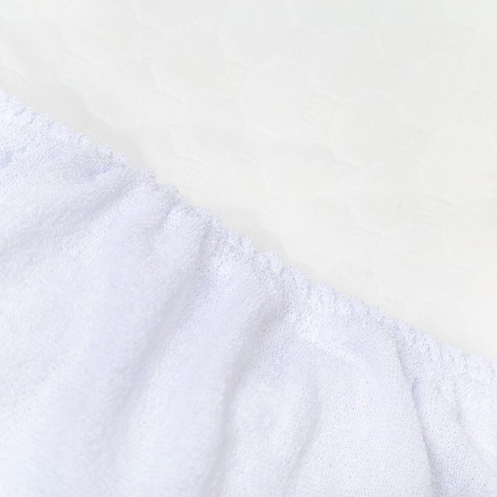 Наматрасник произведён из материала Double Jersey — термостёганого полотна плотностью 250 г/м². Это мягкий и лёгкий материал, который максимально приятен и удобен в использовании. Внутренний слой непромокаемого наматрасника служит отводчиком влаги и терморегулятором.