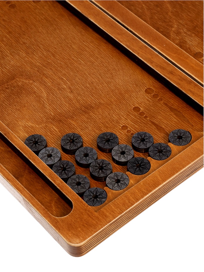 - Поле для игры в нарды: Разметка выполнена специально для классических нард и соответствует привычной логике игрового процесса.