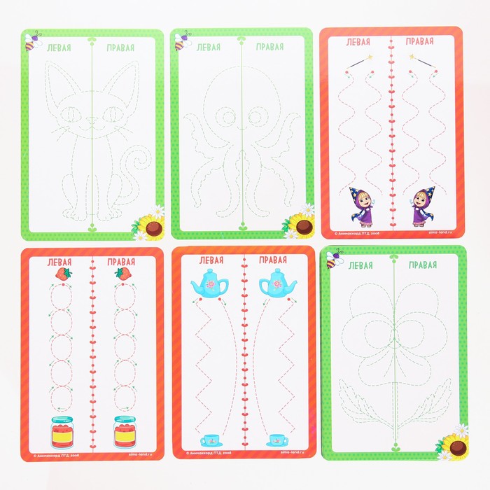 Нейропсихологический набор пиши-стирай «Рисуй двумя руками. Шаг 2», 20 карт, Маша и Медведь