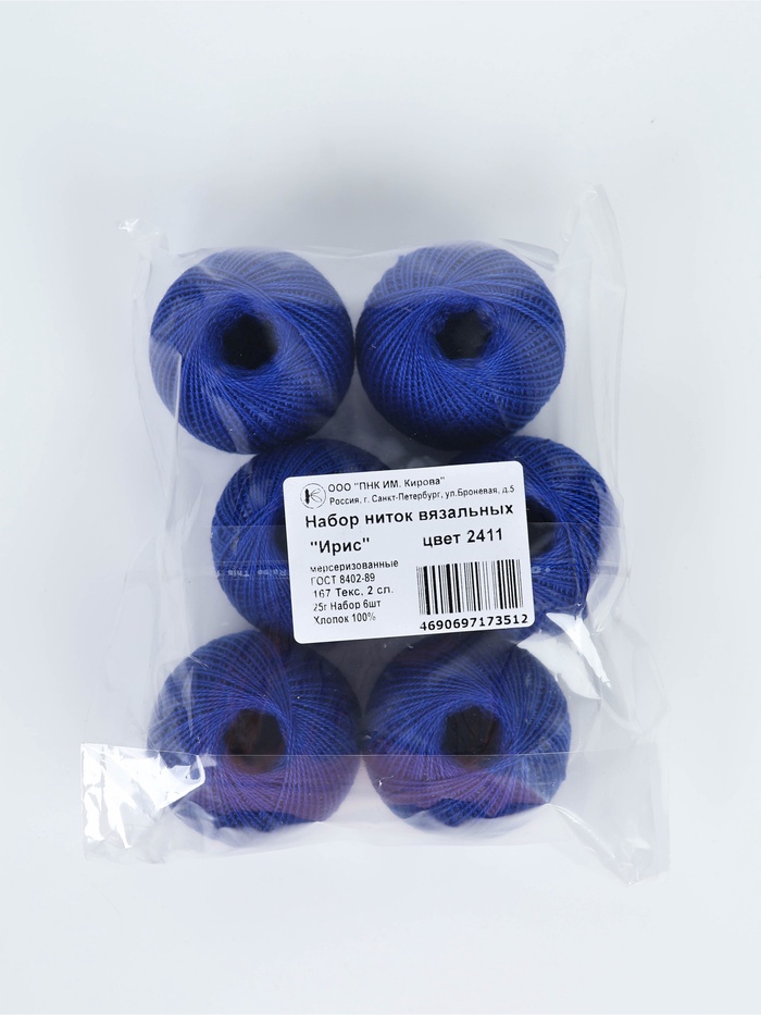 Технические характеристики Нитки вязальные "Ирис" 150м/25г 100% мерсеризованный хлопок Набор 6шт (2411)