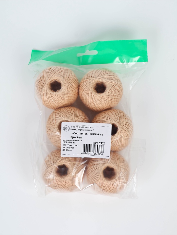 Технические характеристики Нитки вязальные "Ирис" 150м/25г 100% мерсеризованный хлопок Набор 6шт (5902)