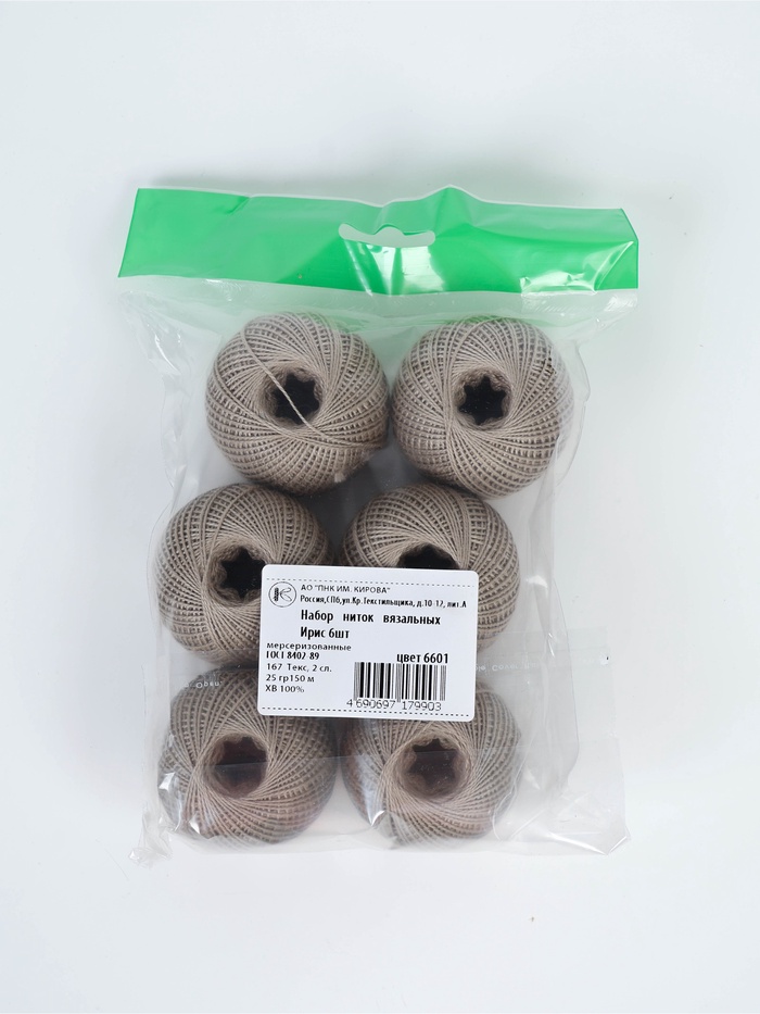 Технические характеристики Нитки вязальные "Ирис" 150м/25г 100% мерсеризованный хлопок Набор 6шт (6601)