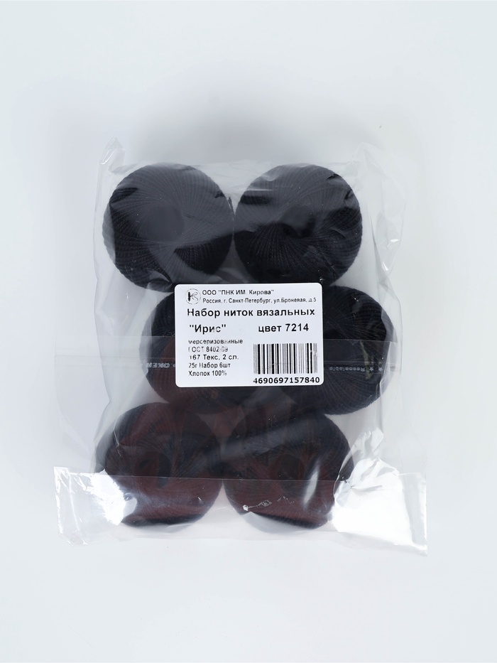 Технические характеристики Нитки вязальные "Ирис" 150м/25г 100% мерсеризованный хлопок Набор 6шт (7214)