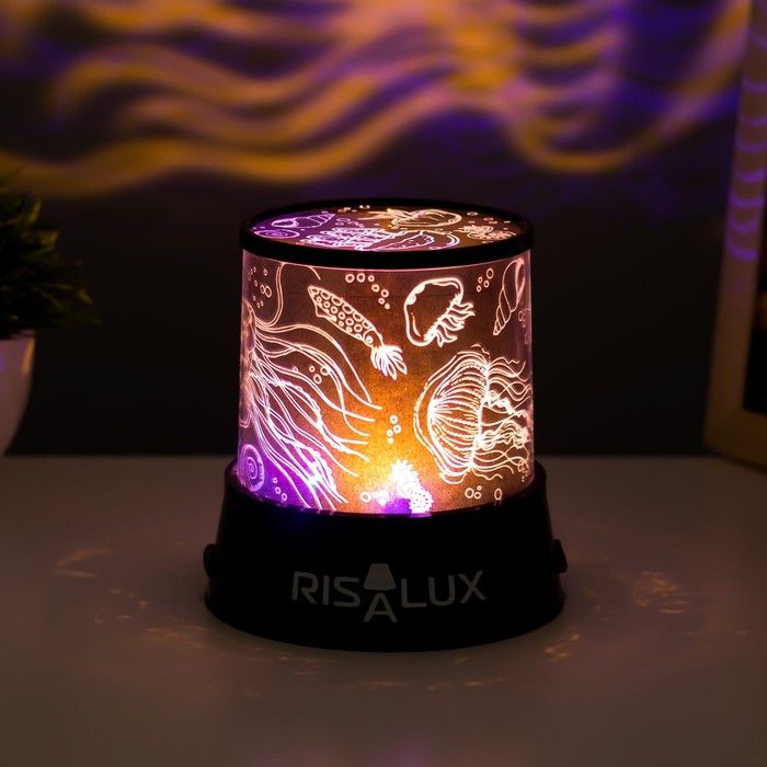 Ночник - проектор RISALUX «Медузы», LED, от USB/ батареек, чёрный, 10.8×10.8×11.5 см