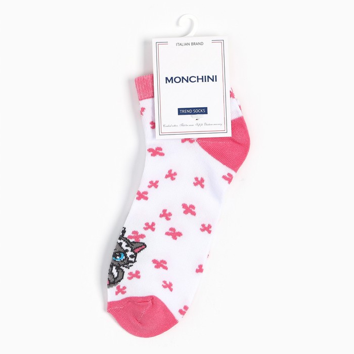 Носки женские MONCHINI, принт белый котик, размер 38-40