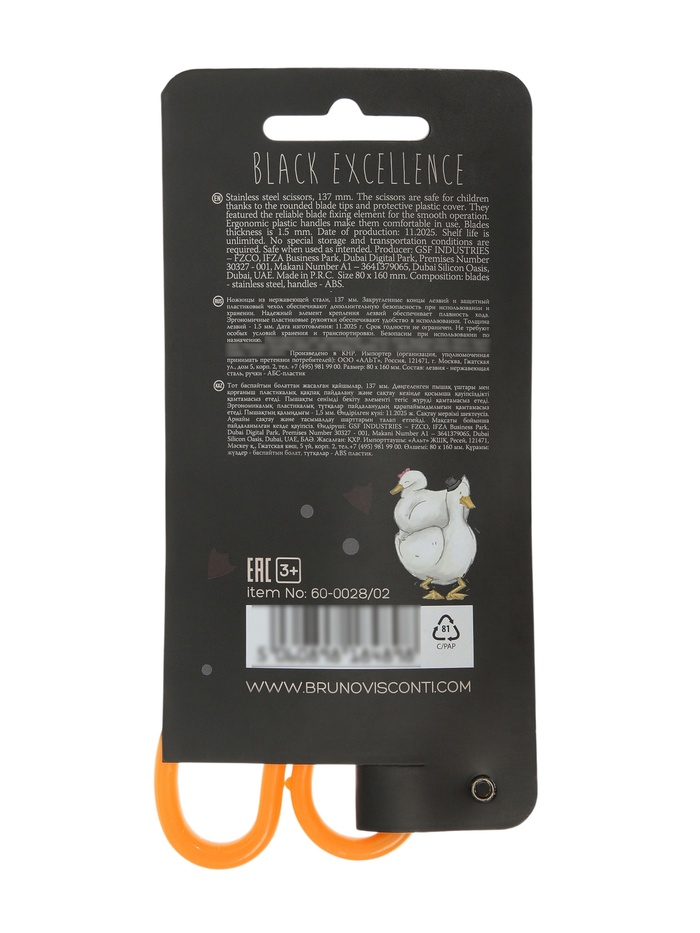 Ножницы детские 13.7см "BLACK EXCELLENCE. Гуси", с защитным чехлом
