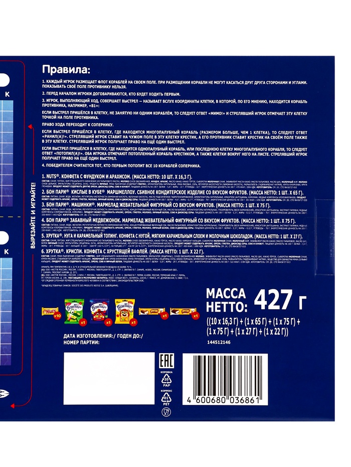 Технические характеристики Новогодний адвент-календарь «БонПари», 427 г