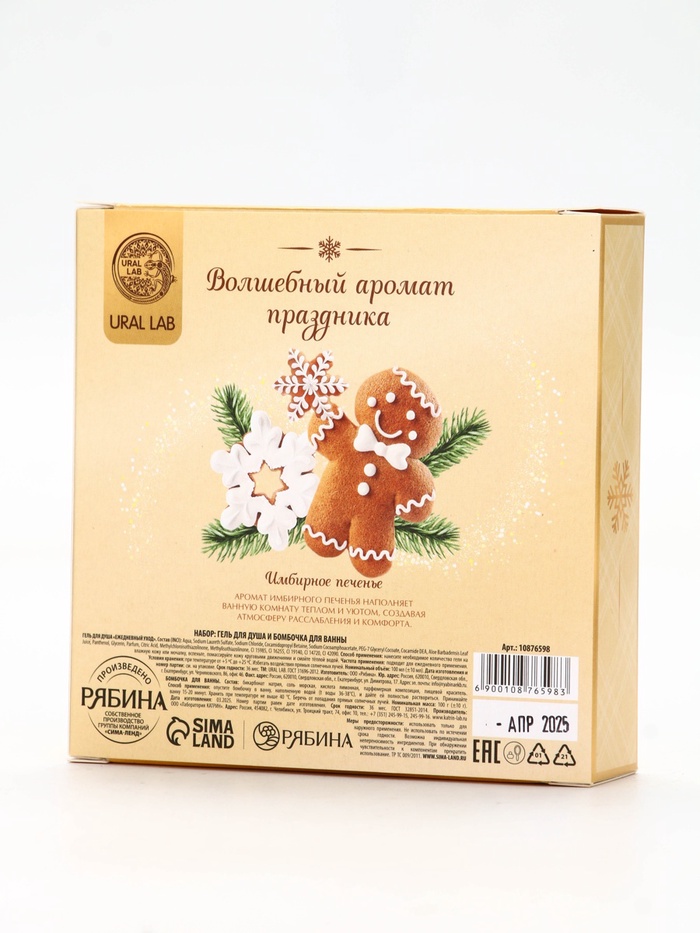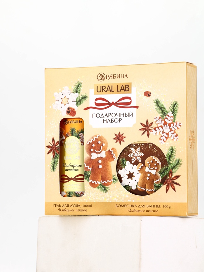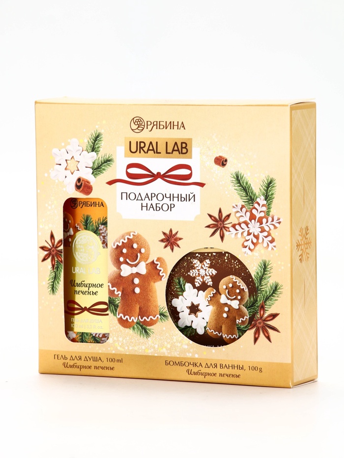 Технические характеристики Новогодний подарочный набор косметики: гель для душа 100 мл и бомбочка для ванны 100 г, аромат имбирное печенье, URAL LAB