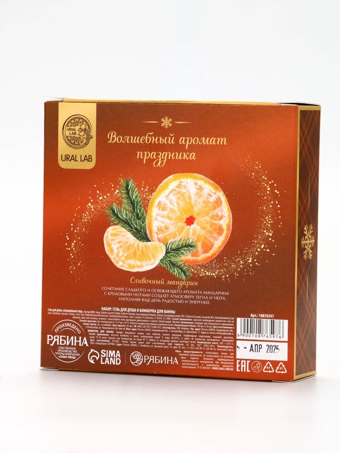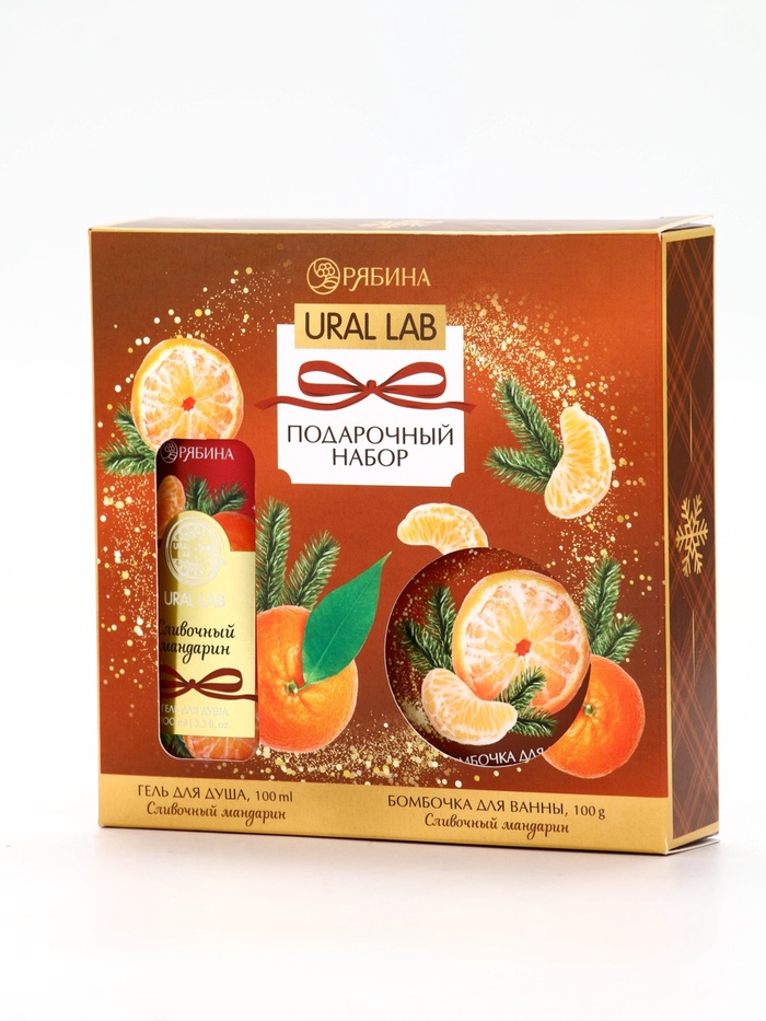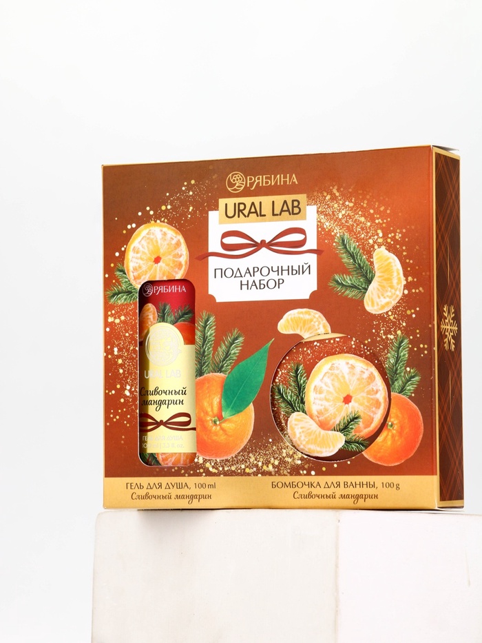 Технические характеристики Новогодний подарочный набор косметики: гель для душа 100 мл и бомбочка для ванны 100 г, аромат мандарин, URAL LAB
