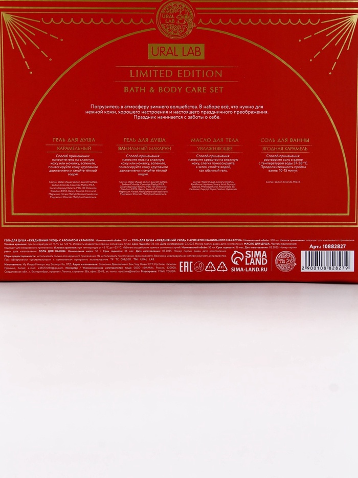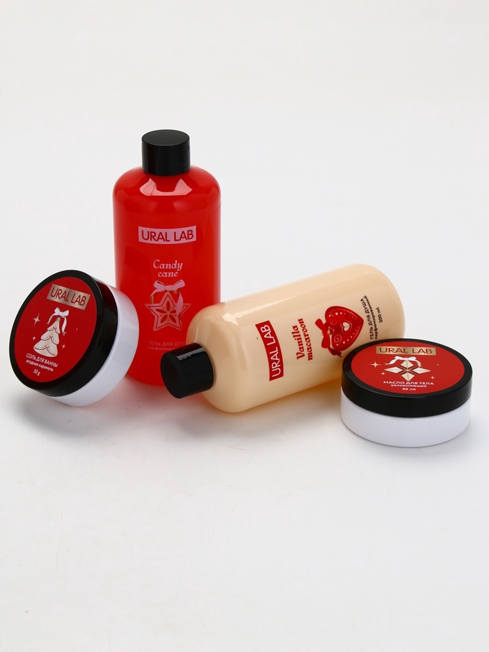 Технические характеристики Новогодний подарочный набор косметики: гель для душа 2 шт., соль и масло для душа, URAL LAB