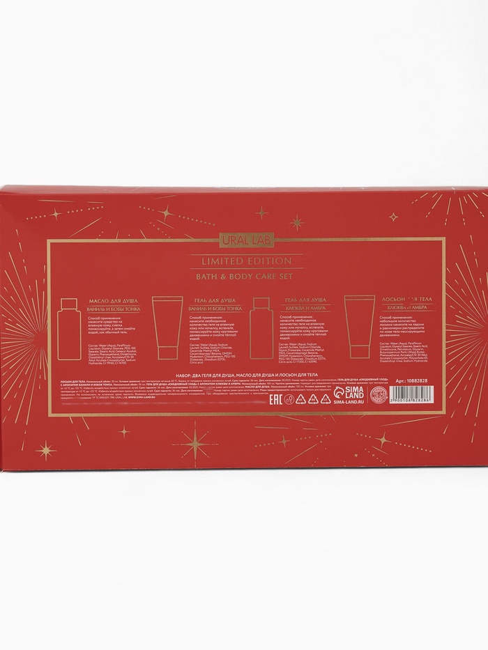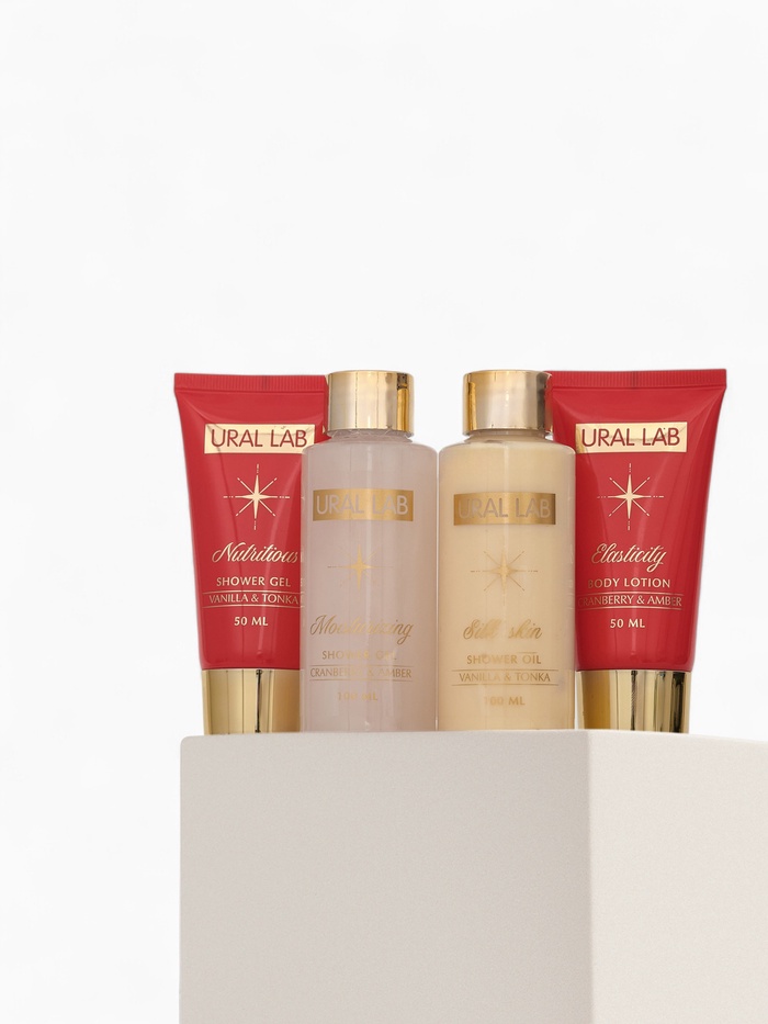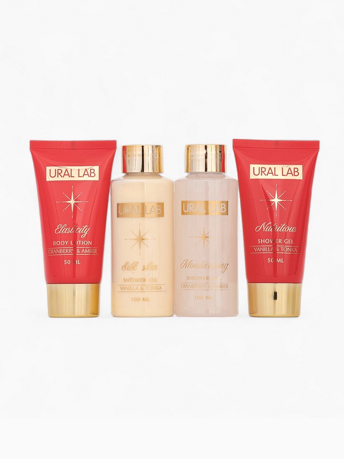 Технические характеристики Новогодний подарочный набор косметики: гель для душа 2 шт., масло для душа, лосьон, URAL LAB