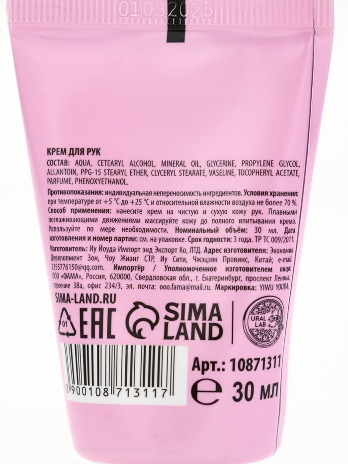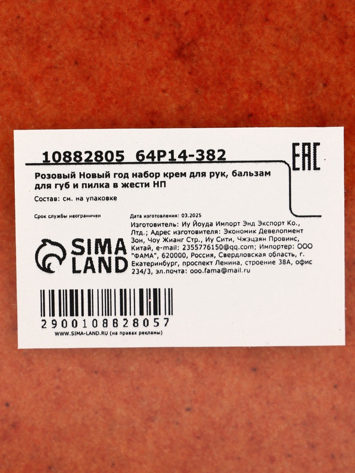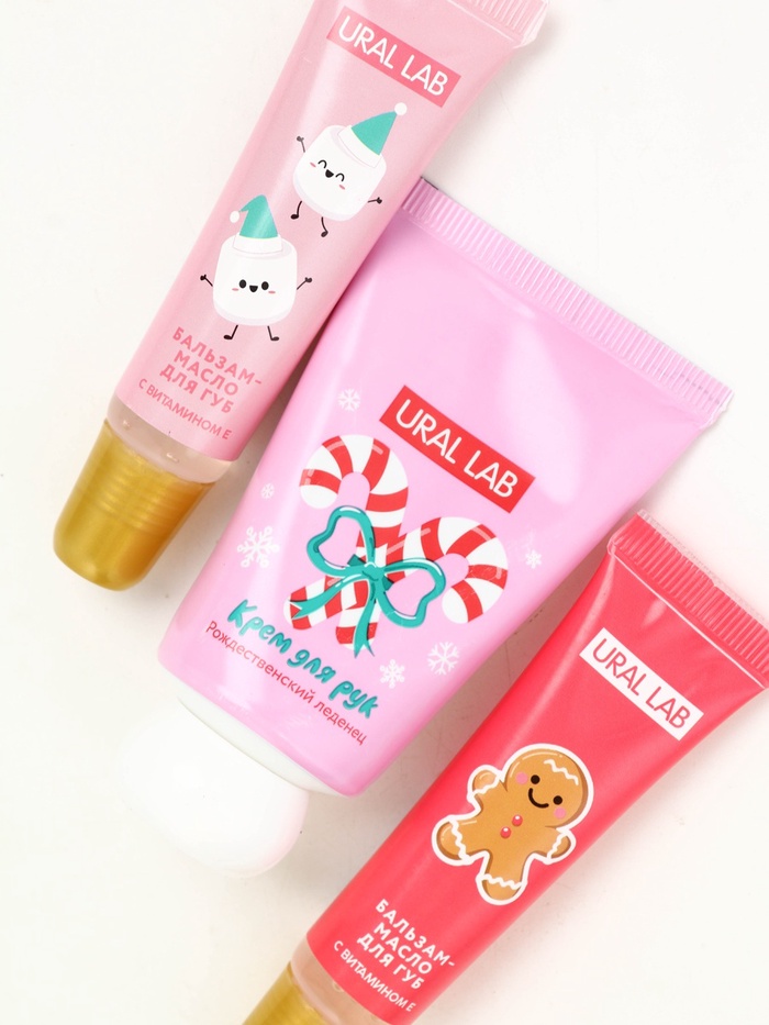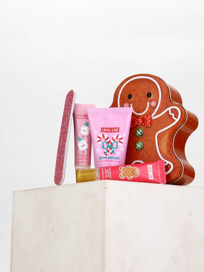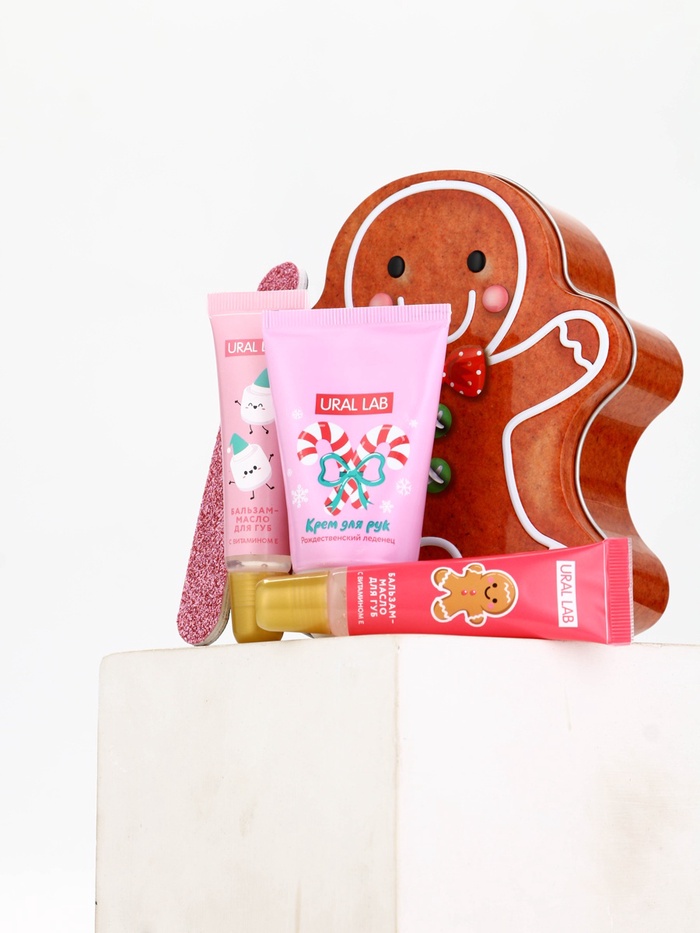 Технические характеристики Новогодний подарочный набор косметики: крем для рук, бальзам для губ, пилочка для ногтей, URAL LAB