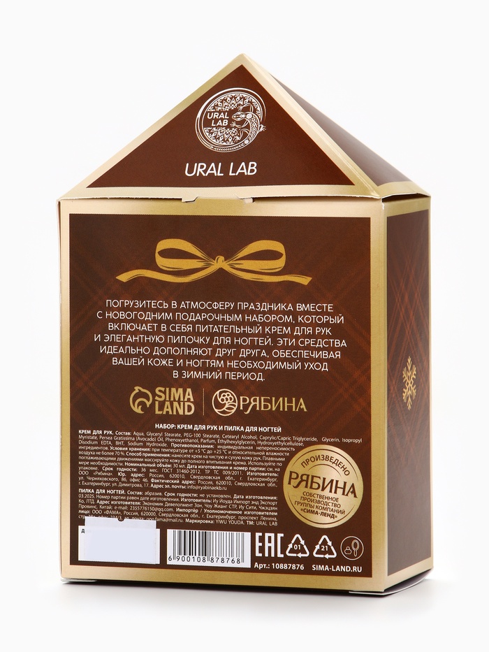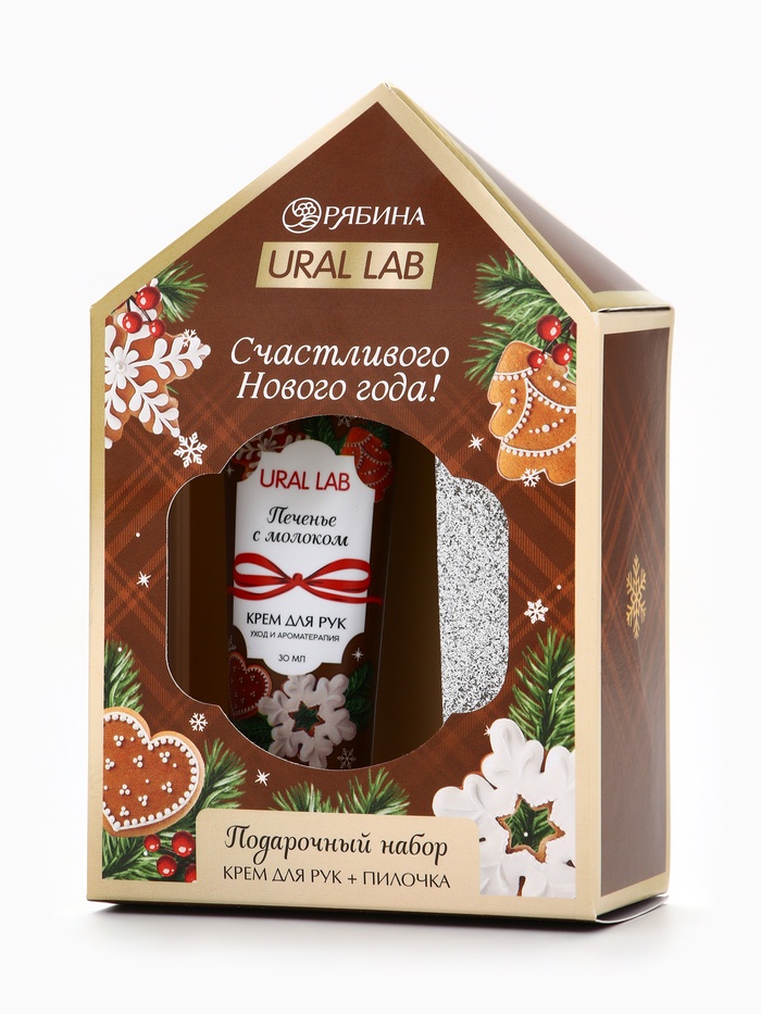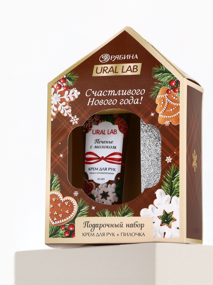 Технические характеристики Новогодний подарочный набор косметики: крем для рук и пилка для ногтей, аромат печенье, URAL LAB