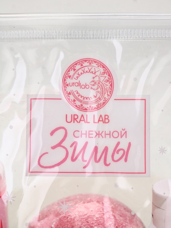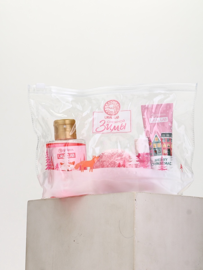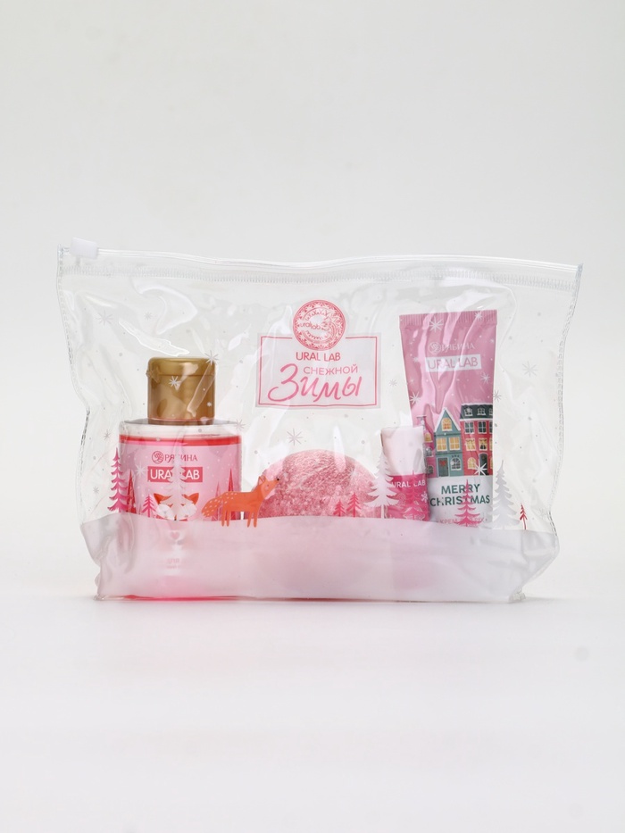 Новогодний подарочный набор косметики «Снежной зимы»: гель для душа,крем, бомбочка, бальзам, косметичка, URAL LAB