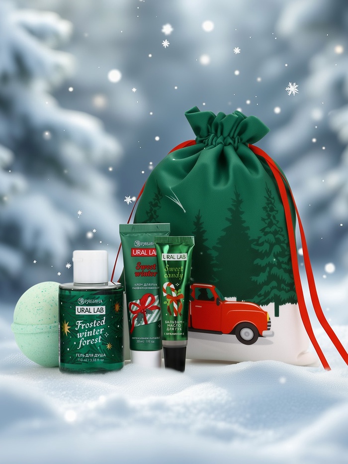 Новогодний подарочный набор косметики в мешке, зимний лес, URAL LAB