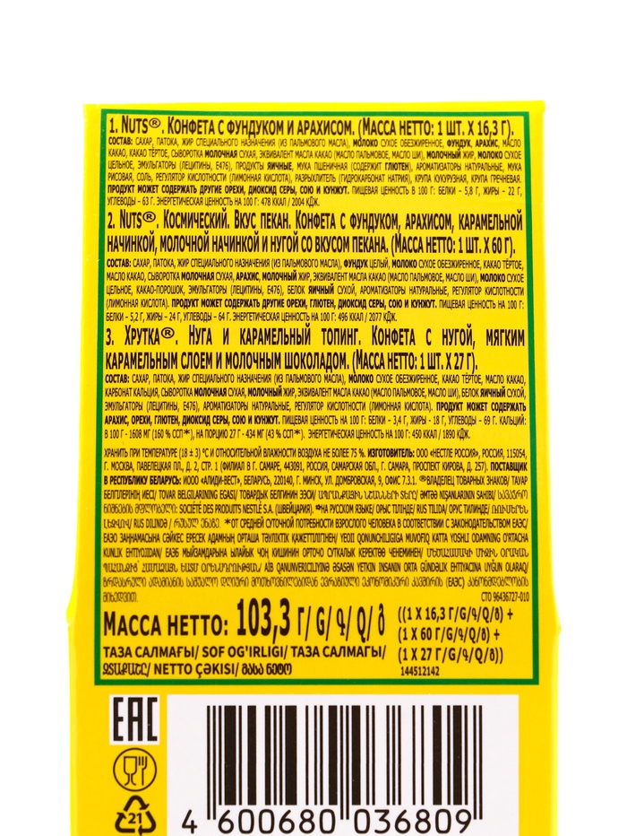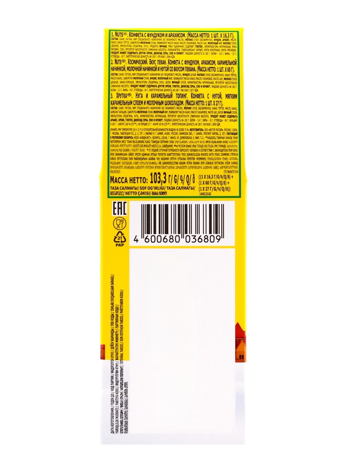 Технические характеристики Сладкий новогодний подарок NUTS «Ёлочка», 103 г