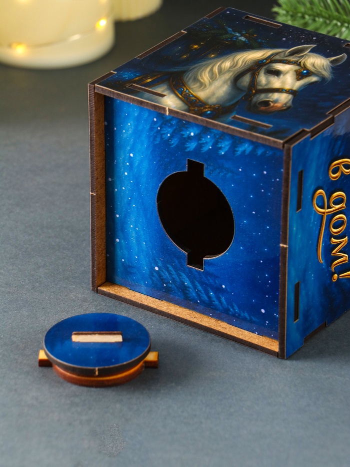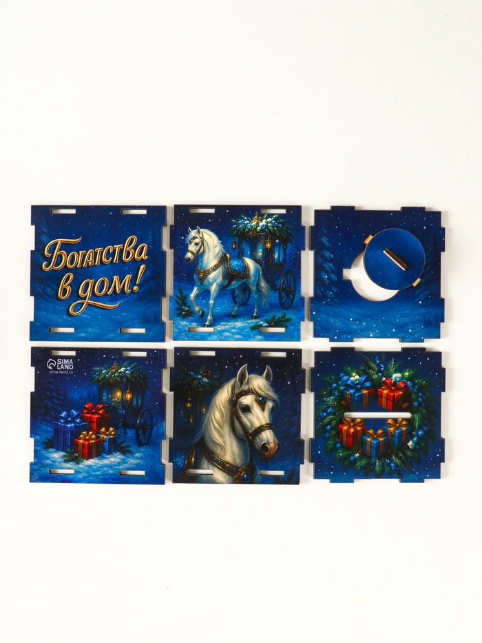 Деревянная копилка для денег «Богатства в дом. Новый год», куб, 10×10×10 см, (набор 7 деталей)