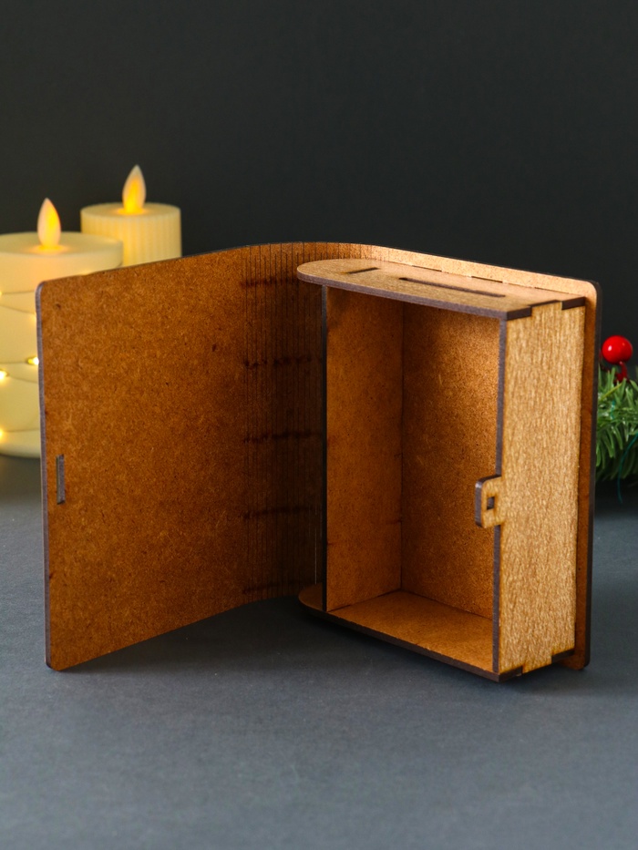 - Фигурная форма в виде книги: копилка выглядит как декоративный предмет и органично вписывается в домашнюю обстановку.