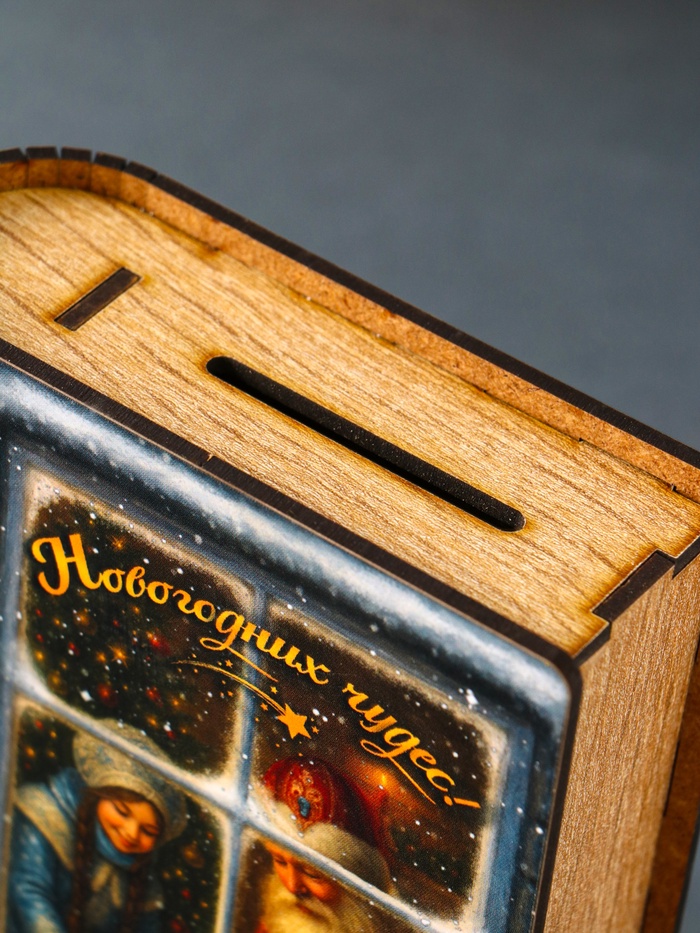 Эта новогодняя копилка-книга станет красивым и практичным началом вашей традиции откладывать деньги. Она напоминает яркий праздничный том, который со временем наполняется не историями, а вашими сбережениями. Открытый дизайн превращает процесс накопления в простой и наглядный ритуал для всей семьи.